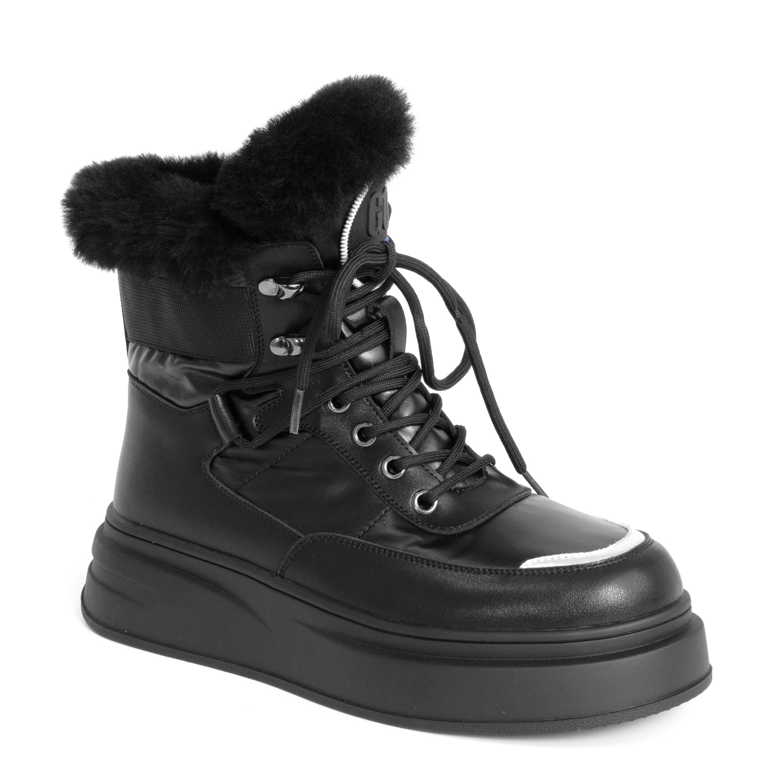 women ankle boots with fur and microfiber leather and down cloth